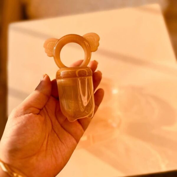 پستانک میوه خوری طرح هی اور شی پوره خوری یا پستانک میوه خوری تمام سلیکونی دندونگیر هم هست 🥰 وقتی پوره خوری باشه میتونید بدون استرس پریدن تو گلوی نینی بهش میوه بدید ک مستقل بخوره همزمان باعث کاهش خارش لثه هم میشه میتونید داخلش میوه گوشت و چیزای این مدلی بزارید 🥰