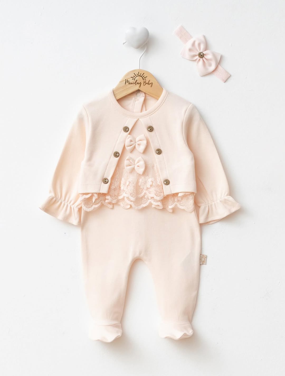مجموعه پنج تیکه با جزئیات گل که مخصوص دختران نوزاد تازه متولد شده طراحی شده است، گزینه ای زیبا و راحت در روزهای اول کودک شما ارائه می دهد. جزئیات گل ظرافت کودک شما را افزایش می دهد. پارچه ارگانیک و صد درصد پنبه مناسب برای پوست حساس کودک شما، احساس راحتی می دهد. این ست با طراحی آسان برای پوشیدن، استفاده عملی را فراهم می کند و استایل کودک شما را برجسته می کند.