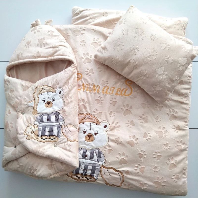 تضمین کیفیت و ثبات رنگ شامل : تشک، پتو، بالشت، کیسه خواب جنس : مخمل حبابی ابعاد : کیسه خواب (35*72 سانتی متر) ، بالشت (46*35 سانتی متر)، پتو (80*107 سانتی متر)، تشک (62*77 سانتی متر) خصوصیات : گلدوزی با کیفیت بدون رنگ پریدگی، با دوام و مقاوم، بدون حساسیت و آلرژی رده سنی : نوزادی تا 2 سال کشور سازنده : ایرانسرویس خواب چهارتیکه تدی بهارک