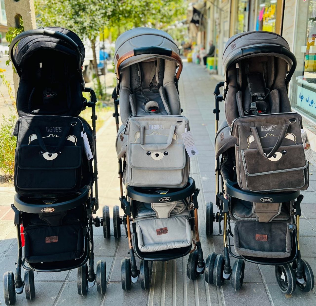 *کالسکه؛تاشو و مسافرتی٫دسته رو به مادرشو٫پشتی قابل تنظیم٫تایر بزرگ و تایر های جلو ۳۶۰ درجه و ترمز دار٫دارای پد دوبل و کمربند ایمنی٫زیرکالسکه سبد جای خرید