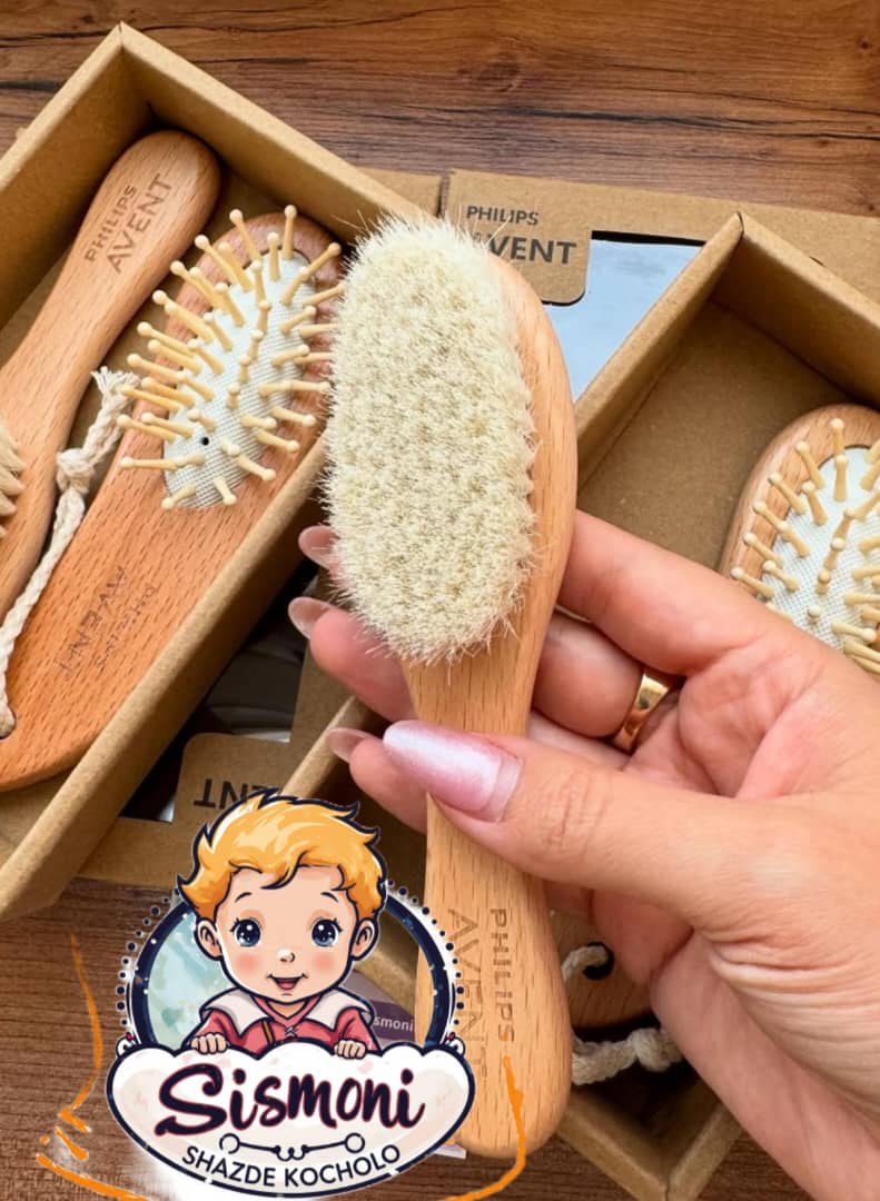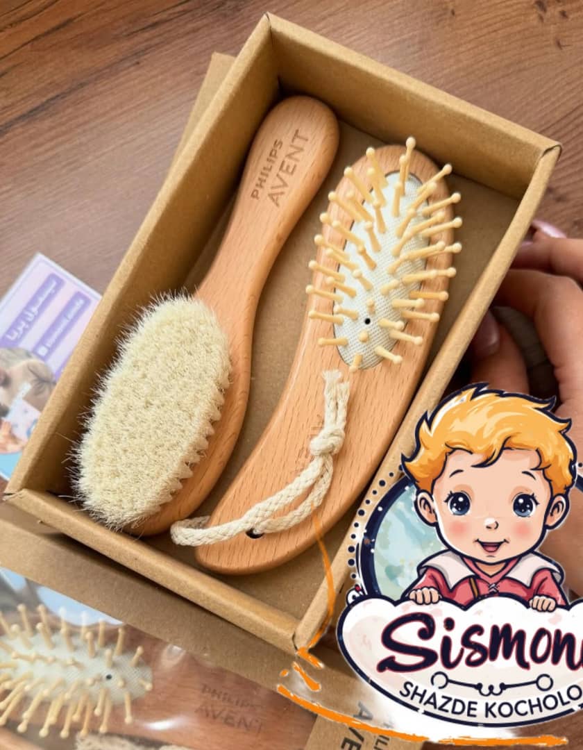 از برس دیگر که دارای دندانه های چوبی است می توانید زمانی که موهای فرزندتان رشد کردند استفاده کنید تا به کمک آن بتوانید گره موهای کودک را باز کرده و به موهای او حالت دهید.