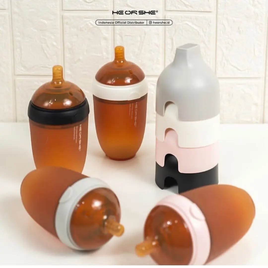 شیشه شیر هی اور شی مناسب برای نوزادانی است که همزمان با شیر مادر و شیر خشک تغذیه می شوند. این محصول با داشتن سرشیشه گرد و پهن مانند سینه مادر است و نوزاد هنگام شیر خوردن با شیشه شیر تغذیه ای مانند تغذیه با شیر مادر را تجربه می کند. سبک بودن و انعطاف پذیری بالای آن, در دست گرفتن شیشه شیر را توسط مادر و نوزاد راحت می کند.