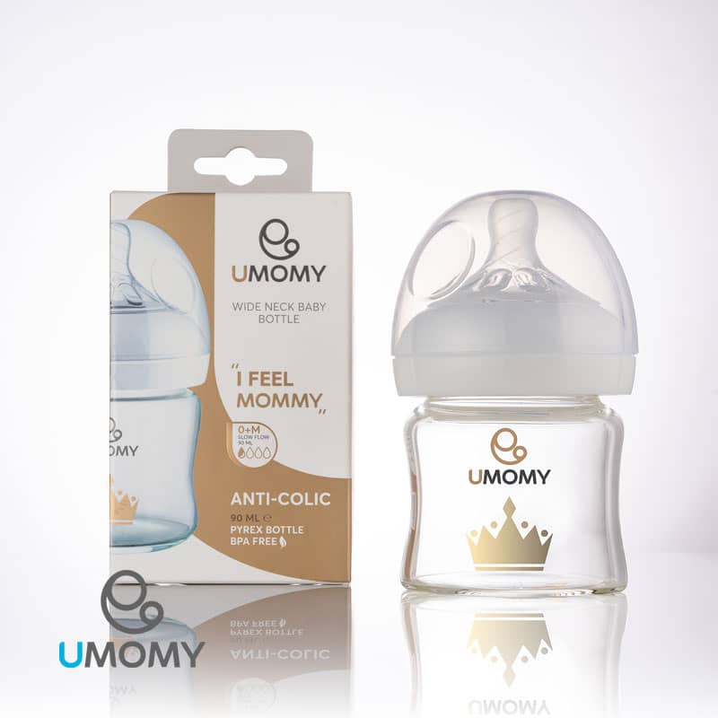 شیشه شیر پیرکس 90 میل 1 قطره بدو تولد یومامی umomy